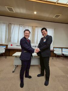 1月10日、飛騨古川さくら物産館にて新年定時総会が行われました。中村直前理事長より谷口理事長に理事長バッジが引き継がれました。2026年度スローガンは「共議・共創・共進」。